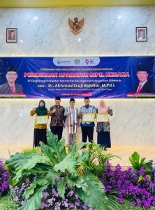 Apresiasi penghargaan diberikan pada momen Pembinaan Aparatur Sipil Negara (ASN) yang digelar oleh Kantor Kementerian Agama Kabupaten Sidoarjo di Aula Al Ikhlas, Rabu (22/01/2025). Akhmad Sruji Bahtiar, Kepala Kantor Wilayah Kementerian Agama Provinsi Jawa Timur berkenan memberikan piagam penghargaan kepada Umi Salamah peraih juara 1 tingkat Provinsi kategori Kepala MI Berprestasi, Ahmad Syafii peraih juara 3 tingkat Provinsi kategori Laboran Madrasah Berprestasi, dan Nur Sjamsuarini Pudji Astutik peraih juara harapan 3 tingkat Provinsi Jawa Timur kategori Guru Inspiratif jenjang MTs.
